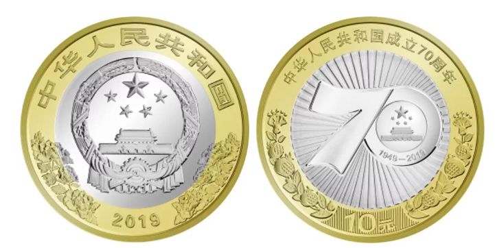 中华人民共和国成立70周年双色铜合金纪念币每人预约、兑换限额为20枚。